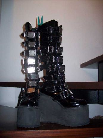 Poichè da idiota ho sbagliato taglia, vendo i miei amatissimi stivali Demonia. Li ho usati solo 3 volte. Solo che mi sono davvero troppo grandi. li vendo a 130 euro, sono taglia 38, in vernice con le cinghie regolabili (non hanno problemi di larghezza del polpaccio) e sulle cinghie hanno una piastrina di metallo ogni cinghia.