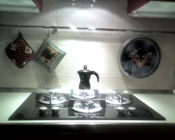 Allora non ho saputo resistere, ho iniziato a scartare i pacchi di tutta la roba che avevamo comprato in questi mesi che labbiamo aspettata.. e via di servizio di piatti, servizio di bicchieri, tazzine, pentole, macchina del caffè, vasi porta zucchero,sale tè e caffè e via tutto di seguito uno dopo laltro ed inizia a posizionare la roba... ero un fiume in piena, un bimbo nel paese dei balocchi..non volevo piu fermarmi finchè non avevo finito le scorte di oggetti...