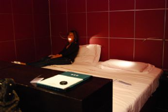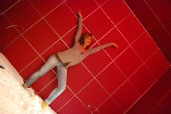 All’interno della 214... il cubo fucsia con il letto...
