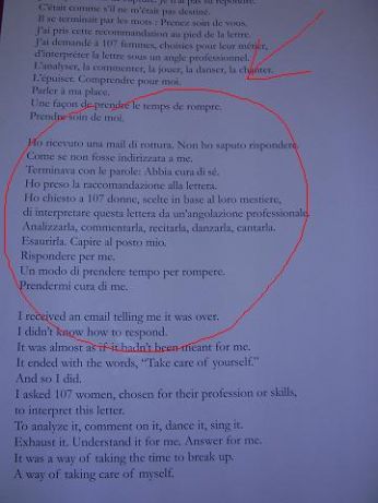 caroli88, 19 anni spritzina di padova CHE FACCIO? IUAV Arti Visive a VE,ballerina,animatrice Valtur Sono sistemato [ SONO OFFLINE ] [ PROFILONE ] [ SCRIVIMI ] STO LEGGENDO PIACERE: ![]() DOVERE: Estetica: ![]() Storia della danza: ![]() Laboratorio di teatro: Puskin HO VISTO ![]() ![]() ![]() ***** ![]() ***** ![]() ***** ![]() ***** BIENNALE di VENEZIA Pensa con i sensi, senti con la mente ![]() ***** A Teatro a Bassano: ![]() ***** ARTEMPO: where time becomes art ![]() ***** Sequence: sequenze d’arte contemporanea STO ASCOLTANDO ![]() [...]the mouth strangles words can’t spin in at your mouth there’s nothing like a dream (nothing like a dream) there’s nothing like a dream (nothing like a dream) as long as we can tear down these houses ***** SAFARI Il nuovo album di Jovanotti ABBIGLIAMENTO del GIORNO ORA VORREI TANTO... essere al suo posto: ![]() e chi non vorrebbe esserlo?? STO STUDIANDO... ![]() IUAV Arti Visive e dello Spettacolo -VENEZIA- -fondamenti delle pratiche artistiche -diritto delle pratiche artistiche -fondamenti del teatro -informatica -LABORATORIO di ARTE 1 OGGI IL MIO UMORE E'... ORA VORREI TANTO... ORA VORREI TANTO... ORA VORREI TANTO... PARANOIE 1) quando per una volta le cose strafilano per il verso giusto e improvvisamente si sfilano maledettamente..così ci si ritrova x l'ennesima volta con la solita matassa di fili aggrovigliati tra le dita. 2) quando vuoi fare foto col cell e ti appare il messaggio "memoria piena" ma non sai quali cavolo di foto cancellare!! 3) non essere in grado... non essere in grado... non essere in grado.... 4) Quando il telefono squilla e non è chi vorresti tu! MERAVIGLIE 1) veder sorridere una persona a cui tieni.. e sapere che quel sorriso è merito tuo.. 2) ... l'instabilità del caso ... sapere che vivere nn è una teoria matematica e in ogni attimo tutto può essere rivoluzionato anche da una semplice frase... 3) l'autoironia...fa sempre bene!! 4) la fantasia e la voglia di inventare... |