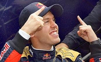 Sebastian Vettel, il più giovane pilota a vincere un Gp, sale sul podio con il sorriso di chi ha ottenuto la soddisfazione più grande in ciò che crede.