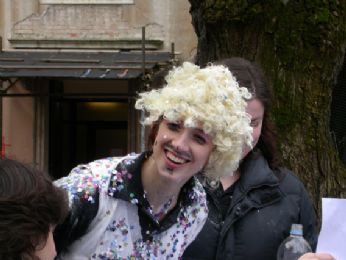 e naturalmente ricoperta di schiuma, coriandoli, farina, uova...