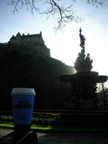 Eccomi lì. Io con il mio caffè-to-go da 2 pound. Mi guardo in una vetrina e mi sento a posto. Attraverso il cimitero. Gli alberi di Rowan, come quello tatuato sulla mia caviglia, sono nudi in questa stagione e un po’ vergognosi mi danno il benvenuto nel viale dei Princes Gardens. Mi siedo su una delle tante calde panchine di legno in-memoria-di. La fontana di Ross, asciutta e silenziosa, mi nasconde il sole. Guardo il castello sul suo vulcano spento. E’ lunedì mattina, non c’è nessuno. Le paure, i dubbi, le paranoie, la tristezza, in questi cinque minuti, non fanno parte di me.