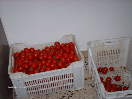 ..pomodori freschi colti al mattino e messi nelle tipiche cassette!