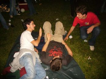 ..uomini impegnati in discorsi seri...(chi guida?io ho bevuto, dai guida mazza..ma questo telo è di plaaasticaaaa....)