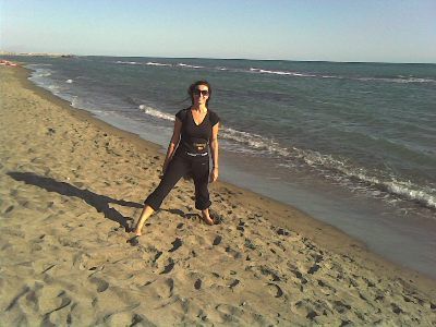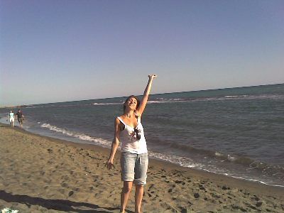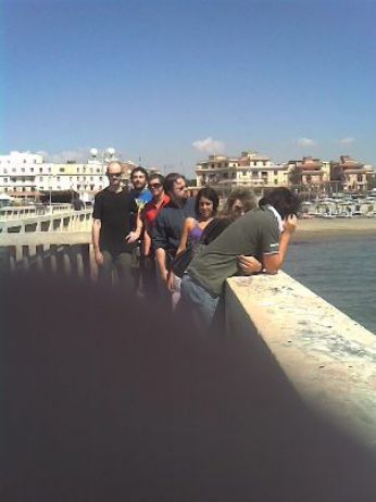 Non è che non volevo parlare di questa trasferta, eh, anzi, solo aspettavo di riuscire a scaricare le foto dal mio nuovo cell! E ora, lasciatemi gasare un po’, dopo 3 sere che ci provo, ci sono riuscita! (mi sto notevolmente intelligentizzando si vede!). Dicevo. Definirei la trasferta la più piacevole fatta dai/coi Freeway, nonostante i 550 km x gamba. Arrivare atrofizzata e sgranchirmi le gambe sulla sabbia, davanti a quell’acqua celeste che, devo ammettere, invogliava, e respirare l’aria di mare a pieni polmoni, sotto un sole davvero generoso, è stata una bellissima sensazione. Ma il bello era cominciato prima, ancora in Veneto, al momento in cui ho rivisto tutti (fw +morose) all’autogrill, i saluti, i “quanto tempo, come va?hai cambiato colore dei capelli?... Per una volta poi la camera d’albergo non aveva nulla che non andasse, la cena è stata buona, il concerto è stato bello (rivederli dopo un po me li ha fatti gustare di più) e apprezzato dal pubblico, ma soprattutto, ho rivisto Mariella dopo ben 9 mesi!! E sono doppiamente contenta, x il fatto che pare aver apprezzato molto la bravura dei miei amici! Domenica passeggiatina pre-pranzo fronte mare, giusto per farsi venire appetito, o meglio, voglia di pizza (facendo la bella nel ristorante A e andando a finire a mangiare non più pizza nel ristorante B) e godersi le ultime concessioni dell’estate.