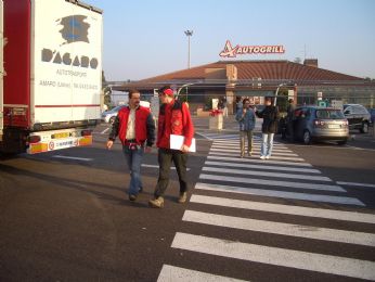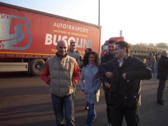 - giovedi 21 ore ?????: è buio, fa freddo, siamo stanchi morti, entriamo in autostrada a trieste e ci fermiano al primo autogrill per mangiare un boccone. Io sono finito non vedo l’ora di stendermi a letto, però la lucy e giordano corrono veramente troppo piano (sotto i limiti di velocità), quindi penso ...... siamo in autostrada ..... basta andare dritti ..... non possono perdersi ...... quasi quasi io intanto vado avanti e li aspetto al casello.