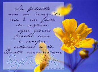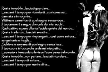 Non sono una rosa, ma a volte pungo come se avessi le spine, altre invece, mi sento fragile come i suoi petali ... Non sono la luna, ma a volte la mia luce è così tenue che a malapena riesco a illuminare i profili, altre invece, riesco a far emozionare anche un cuore... Non sono la pioggia, ma a volte cadendo spengo anche un incendio ,altre volte, disseto i campi aridi dove non cresce più nulla. Non sono il vento, ma a volte distruggo le cose più fragili, altre invece, spazzo via ciò che non serve più. Non sono il mare, ma a volte porto malinconia, altre invece riesco a far sognare. Sono una donna ... a volte riesco a farti maledire il cielo , altre invece, riesco a farti perdere nell’eternità di un brivido.... giovedì 19 giugno 2008 - ore 10:47 un ricordo a Carolina e Nicole...due angeli volati via troppo presto... ![]() Lunga e diritta correva la strada l’auto veloce correva la dolce estate era già cominciata vicino lui sorrideva. Forte la mano teneva il volante forte il motore cantava non lo sapevi che c’era la morte quel giorno che ti aspettava. Non lo sapevi che c’era la morte quando si e’ giovani e’ strano poter pensare che la nostra sorte venga e ci prenda per mano. Non lo sapevi ma cosa hai pensato quando la strada e’ impazzita quando la macchina e’ uscita di lato e sopra a un’altra e’ finita. Non lo sapevi ma cosa hai sentito quando lo schianto ti ha uccisa quando anche il cielo di sopra e’ crollato quando la vita e’ fuggita. Dopo il silenzio soltanto e’ regnato tra le lamiere contorte sull’autostrada cercavi la vita ma ti ha incontrato la morte. Vorrei sapere a che cosa e’ servito vivere amare e soffrire spendere tutti i tuoi giorni passati se presto hai dovuto partire. Voglio però ricordarti com’eri pensare che ancora vivi voglio pensare che ancora mi ascolti e che come allora sorridi. SCUSA ALLO SPRITZINO A CUI MI SONO PERMESSA DI FREGARE QUESTO POST....MA PURTROPPO HO PERSO ANCH’ IO QUALCUNO DI CARO SULLA STRADA... LEGGI I COMMENTI (6) - PERMALINK mercoledì 18 giugno 2008 - ore 21:08 MORIRE DI TE............ COMMENTA (0 commenti presenti) - PERMALINK mercoledì 18 giugno 2008 - ore 13:47 ![]() COMMENTA (0 commenti presenti) - PERMALINK martedì 17 giugno 2008 - ore 15:57 HAINEKKEN!!!!!!!!!!!! NESSUNO CERCA UN BIGLIETTO PER L’HAINEKKEN DI SABATO SERA?????????? LEGGI I COMMENTI (1) - PERMALINK martedì 17 giugno 2008 - ore 15:06 COMMENTA (0 commenti presenti) - PERMALINK martedì 17 giugno 2008 - ore 11:01 ma che bella!!!!!!!!!!! ![]() che ne dite? potrebbe essere carina come "casetta"??? che figata di villa cavolo!!!!! altro che casetta....mi piacerebbe troppo viverci!!!! LEGGI I COMMENTI (2) - PERMALINK lunedì 16 giugno 2008 - ore 21:18 troppo bella questa immagine... ![]() LEGGI I COMMENTI (3) - PERMALINK lunedì 16 giugno 2008 - ore 09:15 ATTENTION!!!! ciao ragazzi!!! qualcuno di voi cerca un biglietto per l Hainekken per la serata di Sabato sera???? ce l ho io!!!!! chi lo vuole? LEGGI I COMMENTI (5) - PERMALINK venerdì 13 giugno 2008 - ore 15:47 COMMENTA (0 commenti presenti) - PERMALINK venerdì 13 giugno 2008 - ore 14:50 ![]() -V-...questa era una di quelle che mi piaceva.... LEGGI I COMMENTI (2) - PERMALINK > > > MESSAGGI PRECEDENTI |