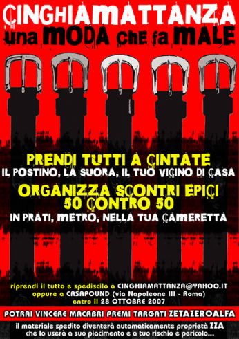 Voglio essere spudoratamente malizioso, sicché lancio il pensiero che segue come pura provocazione, vista limmensa fiducia che il sottoscritto ha nelle vergini ed incorrotte Istituzioni: passando il principio che è passato a Genova, per un qualsiasi Prefetto, prima della prossima partita "a rischio", sarebbe ben facile "individuare" una scritta sul muro tipo quella "vavemo bruciati vivi" dedicata ai livornesi insieme con la borsa di Luis Vuitton che conteneva molotov fatte con bottiglie da un litro di acqua minerale (i reduci del 68 - dove qualche molotov è stata lanciata - credo siano morti dalle risate nel vederle), per poi vietare la partita a rischio e starsene la domenica a fumarsi una bella sigaretta al mare con la famiglia.