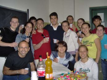 è arrivata anche questa!!! Allora... Come sempre ero in ritardo... 7:30 dalla Sere (anche 7:40 in realtà...). Fortunatamente ho trovato il vino dolce anche al buongustaioooooo... Poi... Dalla Maryyyyyyyyy... Con calma altrimenti il bimbo si agita.. E poi destinazione: Casa di Tegazzzzz!!! Nn me la ricordavo così grande. C’erano quasi tutti... Mancavano solo la gente da Battaglia! Appena arrivati abbiamo iniziato a mangiare. Io ero vicino a Torrrrrreeee (che tremenda... ormai me le dico da sola le battute....) e alla fede. E naturalmente al VINOOOOO!!! Che beo! Quante risate. Poi Torre ci ha mostrato le foto del matrimonio. Che belleeeee. Che bel vestito sua moglieeee! Abbiamo anche tentato di sapere le materie della terza prova ma nulla da fare...!!! Quanto abbiamo mangiato!!! Antipasti, pasta, carne, contorni e dolci!!! (per il menù completo andate nel blog di pri1987) E poi a mezzanotte.... COMPLEANNO SARAAAAA! Quanti versi... Sono entrati peppi e zerba vestiti da super fighe...