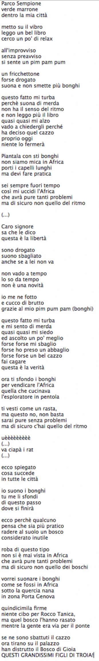 ...resto sempre dell’idea che sia più bello raccontarsi davanti ad un ottimo bicchiere di vino rosso.... mercoledì 24 ottobre 2007 - ore 10:54 QUESTA MACCHINA QUA DEVI METTERLA LAAAAA A’ Sto iniziando ad odiare i quadricicli...seicicli...ottocicli. I dodicicicli proprio li detesto. Piuttosto vivrei di acqua e starei nudo - PERMALINK martedì 16 ottobre 2007 - ore 09:11 buondì siamo quasi a metà settimana...nonchè il fine settimana arriva...nonchè il mese sta per finire...e siamo quasi nel 2008 jslf mi dico vai a fare in culo da solo? cosi ti risparmio la battuti(A) VERGOGNA A CHI SCRIVE SETTIMANA CON UNA T - PERMALINK giovedì 11 ottobre 2007 - ore 09:02 HO DECISO ![]() Voglio trovarla e invitarla a giocare alla MORRA CINESE...poi quando saremo stanchi ANCORA morra cinese...Quando saremo esausti una partita a CURLING... e il mattino dopo se ancora qualcuno avrà energie??? - PERMALINK martedì 9 ottobre 2007 - ore 15:04 GATTO trottolino amoroso dudu dadada non dire gatto se non l’hai nel sacco?? Tanto va la gatta al lardo che ci lascia lo zampino?? (a parte che pensavo dicesse largo... cmq) Occhi di gatto??? Il gatto è il miglior amico dell’uomo???? IL GATTO DEL VICINO MI ODIA CHEDDEVO FA’ COL GATTO DEL VICINO? Fanculo niente foto non trovo un cazzo! - PERMALINK venerdì 5 ottobre 2007 - ore 11:49 U.B.D. La prima è andata... un bacio - PERMALINK mercoledì 26 settembre 2007 - ore 20:34 PARCO SEMPIONE - PERMALINK martedì 25 settembre 2007 - ore 11:35 INCOMPRESO? non compreso non capite la mia genialità - PERMALINK sabato 22 settembre 2007 - ore 21:00 SOLO QUISQUILLIE hai davvero la febbre? viva le suocere...tutte al rogo non ho niente da dire vai a fare in culo - PERMALINK sabato 22 settembre 2007 - ore 20:32 RISPOSTA ALLA RISPOSTA AL SONDAGGIO (non ci sono errori) - PERMALINK giovedì 20 settembre 2007 - ore 17:19 RISPOSTA AL SONDAGGIO ALLORA ANDATE A CAGARE...NON AGGIORNO NIENTE (non ci sono errori) - PERMALINK > > > MESSAGGI PRECEDENTI |