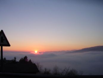 Splendido tramonto ad Asiago con le nubi sotto che danno un effetto paradisiaco