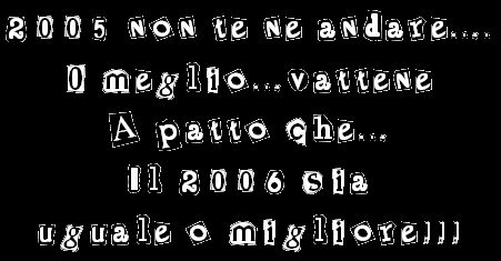lunedì 2 gennaio 2006 - ore 13:10 allora...mi tocca fare sto post per chiarire alcune cose riguardo il MIO ultimo dell’anno e di conseguenza anche il primo dell’anno... PREMESSA: sono stato per tutta la serata in evidente stato di ebrezza. E questo può giustificare molte molte e molte cose che sono accadute (o che ho fatto accadere?).