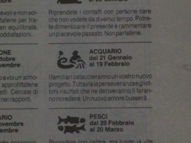 mamma mia se dovessi veramente credere alle stelle oggi non dovrei essere troppo triste...peccato che quello che scrivono non si avvera mai...eh va beh vedremo...sai te...che bello però aggiornare il blog dal telefonino. bello bello...ora lavoro e stasera...beh stasera...via con bruno...avrà lasso nella manica?locale e compagnia?dai bruno dai bruno fammi sognare dopo una giornata di intenso lavoro...e poi lo sai che ho bisogno di distrarmi e non pensare a niente e nessuno...x cui facciamo mattina come molte e molte volte è capitato in passato...tanto siamo ancora giovani dentro e possiamo permettercelo!