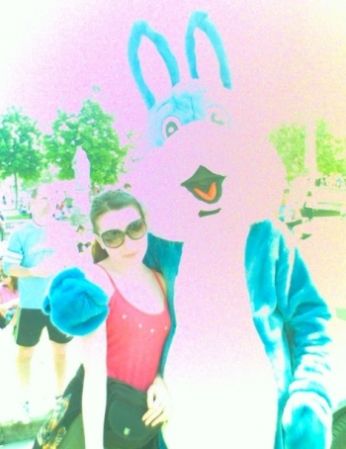 E poi io e la mia mania delle mascottes pelose... sono riuscita a fare una foto con la mascotte ufficiale della maratona (ke non so se ha un nome ma è un coniglio blu :p). Ebbene.... no la foto non è modificata al pc purtroppo la fotokamera del mio cel si fa di acidi ( è l’unika spiegazione ke so dare) !!!Vabbeh è ..."artistica"!!!