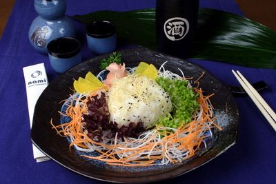 alghe marine, ma si tratta di un alimento molto nutriente. Le alghe nori contengono proteine, minerali - in particolare iodio - e sono ricche di vitamine A, BI, B2, B6, niacina e C. Prevengono l’accumulo di depositi di colesterolo nelle arterie. Più scure sono le nori e migliore è la qualità.
