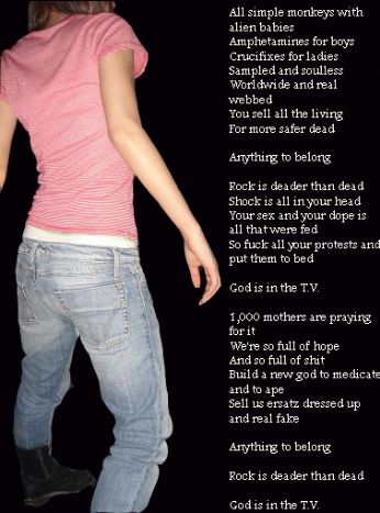 Jackie, 28 anni spritzina di Padova CHE FACCIO? cm Sono sistemato [ SONO OFFLINE ] [ PROFILONE ] [ SCRIVIMI ] STO LEGGENDO HO VISTO STO ASCOLTANDO ![]() Mk Afterhours Carmen Consoli Deftones Disturbed Dresden Dolls Foo Fighters Green Day Hole Joy Division Juliette and the Licks Korn Lo Hi Marylin Manson Murderdolls Nick Cave Nirvana Nofx Papa Roach Pearl Jam Pixies Queens of the Stone Age RATM Sex Pistols Smashing Pumpkins Sonic youth Stone Sour System of a Down The Distillers Tool Yeah Yeah Yeahs usw... ABBIGLIAMENTO del GIORNO ORA VORREI TANTO... STO STUDIANDO... OGGI IL MIO UMORE E'... ORA VORREI TANTO... ORA VORREI TANTO... ORA VORREI TANTO... PARANOIE Nessuna scelta effettuata MERAVIGLIE Nessuna scelta effettuata |