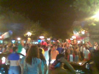 E via alla festa.....per le vie di Jesolo.... bandiere, cori, colori, abbracci e delirio ovunque.... abbiamo incrociato anche qualche tedesco che a testa bassa tornava a casa, e gli abbiamo dato comunque il cinque...