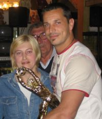 La Morena (una delle fedelissime) premia il portierone Claudio "Caio" Furlan come miglior giocatore votato dai tifosi...