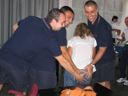sabato 21 giugno 2008 - ore 14:07 Computer guarito.. viva il Dottor House !! Finalmente pare sia uscita la famosa luce in fondo al tunnel per il mio piccì..... Stamattina è arrivato il dottor House dei piccì - Riki - che NON SO COME ci ha messo un po’ le mani dappertutto ed è riuscito a sistemarmi il macchinario che ora fila via che è un piacere anche se ogni tanto "ringhia" qualcosa dal suo interno... Tutto è bene quel che finisce bene.. perdere una giornatina di mare è servita a qualcosa... ![]() ![]() ![]() Dopo 2 giorni di ferie e mare selvaggio mi sono ripresa un po’ dalle fatiche lavorative, anche se regna sempre l’apocalisse totale. Stiamo andando via di melona tutti quanti.... e sinceramente non vedo molto ottimismo x il futuro.... Per fortuna il tempo si è sistemato e si può aprire ufficialmente la stagione tennistica all’aperto... mercoledì doppio scandaloso nel quale ho preso parole anche da quelli del campo vicino xchè non giocavo proprio, giovedì singolare all’ultimo sangue e venerdì, x la serie chi non muore si rivede, s’è fatto vivo quel pirla di Gian per giocare al Garden, e lì ho veramente dato spettacolo, anche se ho il ditone che è proprio massacrato... ![]() ![]() ![]() ![]() ....ma qualcuno sa spiegarmi come cacchio fa la Turchia e vincere le partite a tempo scaduto ?!?!??! ma quanto CULO c’hanno ??? ![]() ![]() ![]() E cmq... cari Francesi, voi tutti a casa, noi no !!!!!!! allez enfants à la patrie......... ![]() ![]() ![]() ![]() ![]() COMMENTA (0 commenti presenti) - PERMALINK lunedì 16 giugno 2008 - ore 19:44 Il mio piccì e in agonia. Non dà più segni di vita, nonostante 4 antivirus sparati in contemporanea (in che maniera non si sa..).. grazie a tutti quelli che mi stanno dando una mano x salverlo dallestinzione... (grazie Simia !!!) A lavoro le cose vanno di cacca che più cacca non si può.... stiamo spofondando nella "deep shit", ma almeno da me la si prende con filosofia e dato che son finite anche le lacrime x piangere la si butta nel ridere e nel canto. Praticamente lapocalisse. Per il resto i pomeriggi proseguono fra una partita delleuropeo e unaltra, amici che vanno, amici che vengono, soprattutto che se ne vanno, altri che vanno a letto col nemico (o-mio-dio ), altri che a letto non ci vanno proprio...Io sto facendo le maratone di sonno. Sono proprio cotta, come un pero. Grazie a Mauro intanto per la bella serata di mercoledì e grazie al Neno per la tagliata che era buona come il pane (ma sapeva di carne) e a Marchetto per il giro in Mini cabrio (che devo dire il cabrio in sto periodo gli serve tanto....).... Arriveranno periodi migliori.... non può piovere per sempre.... ....e intanto ieri una mezza notizia che se è vera...... COMMENTA (0 commenti presenti) - PERMALINK giovedì 12 giugno 2008 - ore 18:11 blog sospeso per piccì ammalato, mancanza di materiale e soprattutto EUROPEI !!!!! a presto...................... COMMENTA (0 commenti presenti) - PERMALINK martedì 3 giugno 2008 - ore 19:17 Oggi giornata devastation a lavoro, non sono neanche andata a mangiare, difatti verso le 4 ho cominciato a fare inquietanti morsi alla matita... fortuna he la Anto ha tirato fuori da dentro un cassetto un pacchetto di crecker senò diventavo come Rufus il castoro. Per concludere la giornata mi ci voleva Roger in msn: spara uninfinità di cazzate, litiga con lortografia e la grammatica, ma in fondo in fondo fa troppo ridere. Ieri mè toccato lavorare, du palle che non finivano più. Alla mattina una tristezza unica, per la strada non cerano neanche i gatti (allora i topi dovevano ballare....) ![]() ![]() ![]() Pure i semafori erano tutti verdi, sono arrivata a lavoro in 3 minuti netti. Poi pausa pranzo fra i colli, fra una bottiglia di Rabosello e una mattonata di semifreddo al torroncino. Al pomeriggio mi ha invaso una piomba da paura. Non riuscivo a tenere gli occhi aperti, ho provato a mangiare caucciù x tenermi sveglia, ma la testa mi cadeva. Mi sono svegliata solo quando Andreone ha proposto di prendermi a schiaffi, e con le manone formato badile che si trova, ho deciso che era meglio abbandonare il mondo dei sogni... Sabato e domenica weekend in quel di Caorle a fare da baby sitter con Carlone e Simo ai 13 allievi, che poveretti, alla fine si sono comportati anche bene e non hanno fatto danni, a differenza di qualcun altra squadra, dove linciviltà regnava sovrana... A dire il vero ho fatto ben poco la baby sitter dato che finchè loro si cucinavano al palazzetto a giocare io me son stata in spiaggia a rosolarmi, però dalle 7 in poi hanno fatto lavorare... Carina Caorle, era dalla preistoria che non ci andavo, bella la spiaggia (ombrelloni un po troppo vicini forse), molto pittoresco il centro, con le casette tutte colorate e dei bei ristorantini. Anche lalbergo era Ok, con tanto di piscina e porta che si apriva con la tessera magnetica che ho impiegato mezzora a capire come funzionava.. però caveva la tv con pochi canali che dopo una certa ora non trasmettevano neanche i filmetti porno (sulle altre camere sì però, comè sta storia !!??).. Sabato passato in spiaggia tutto il giorno, con gli animaletti impegnati al palazzetto a perdere una partita dietro laltra.. alla sera invece cena su un bel ristorantino, che di bello aveva solo la location xchè come cibo lasciava un po a desiderare. Se mi dicevano prima che pagavano Simo e Carlo ordinavo anche il caviale e aragoste !!! Poi giretto in centro, ad ascoltare una cover band dei Bee Gees e ad ammirare una scenetta da youtube degli allievi che in parcheggio, in stile militare, hanno marciato in divisa da riscaldamento inneggiando lurlo di battaglia di Carlone (con Niko che sfoggiava un inquietante paio di occhiali con le lucette verdi)... Poi con il president al Panfilo (ristorante, mica cha la barca!) a bere, con Carlo che iniziato come al solito il suo comizio di cazzate su di me. Serata, o nottata, conclusa a far le ronde e con Niko che ha avuto il coraggio di mette
