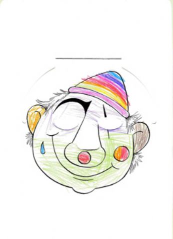 (forse i contorni non si vedono bene ma è una maschera rotonda, fatta di carta e colorata da lei)