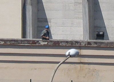 ...dimenticavo vicino alla nostra residenza cè un piccola prigione è ho fotografato lo sfigato di turno, chiamasi secondino, mentre faceva la ronda sulle mura. Ovviamente è stato scherzato con vari cori dagli studenti, ma lui andava avanti impassibile.