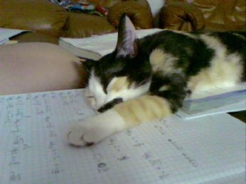 GUARDATE QUI LA MIA MICIA CHE DOPO AVER FATTO TROPPI COMPITI CADE ESAUSTA SUI LIBRI....