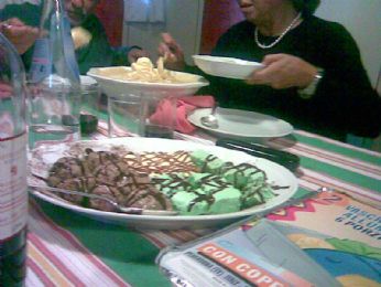 FULL ma ovviamente i dolci e poi per festeggiare il nonno insomma!E così coshanno avuto la bellissima idea di portare??? Già...muss di cioccolato,crema,e menta&cocolato più gelato alla crema con zabaione