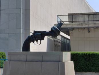 dall’ingresso del palazzo di vetro in piazza delle nazioni unite NYC