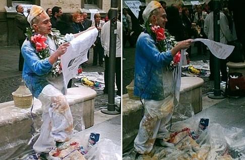 ![]() Take the time to make some sense Of what you want to say And cast your words away upon the waves Sail them home with acquiesce On a ship of hope today And as they land upon the shore Tell them not to fear no more Say it loud and sing it proud Today... And then dance if you want to dance Please brother take a chance You know they’re gonna go Which way they wanna go All we know is that we don’t know -- How it’s gonna be Please brother let it be Life on the other hand won’t let us understand We’re all part of the masterplan Say it loud and sing it proud Today... I’m not saying right is wrong It’s up to us to make The best of all the things that come our way Coz everything that’s been has past The answer’s in the looking glass There’s four and twenty million doors On life’s endless corridor Say it loud and sing it proud And they... Will dance if they want to dance Please brother take a chance You know they’re gonna go Which way they wanna go All we know is that we don’t know -- How it’s gonna be Please brother let it be Life on the other hand won’t let you understand Why we’re all part of the masterplan domenica 22 aprile 2007 - ore 17:44 Le domeniche ecologiche, che due maroni. Ditemi che è l’ultima per davvero. Questi ultimi giorni sono volati... Cos’è successo da mercoledì? Una serata di chiacchiere dal buon sir Claudio... La laurea di Diego il giovedì. Uno che ha coraggio di dimenticarsi la tesi a casa, uno che viene vestito da puffo per l’altezza, uno che al vigile che gli chiede i documenti durante i festeggiamenti davanti al Bo’ risponde “Varda, no gò niente con mi, non te me vedi in che condision che so ciapà?”, uno che ha mandato in ospedale due carabinieri guidando in stato d’ebbrezza, un nuovo ingegnerie che si ricorda dei vecchi Cappe e Ninja, un vecchio amico. Soddisfazione che il comitato papiro abbia usato la mia composizione in rima sulle scuole e le mie foto d’annata! ![]() Tipo questa. La famiglia dei “cinghiali”... tutti i maschi fatti con lo stampo! ![]() Non avevo mai visto la English School in zona Forcellini, tanto meno 7 pulmini scuolabus partire in fila uno dietro l’altro... quanta gente c’è che può permettersi di mandare i figli in scuola privata, oltre al mio capo francese??? Venerdì il tempo di arrivare al lavoro che il mio capo mi fa “vieni che ti offro un caffè?”... Non è una gentilezza, suona tipo un ordine che già conosco, per andare con lui alla macchinette perché mi deve dire qualcosa che orecchie indiscrete non devono sentire... A quanto pare Michel e anche il cretino vice capo stabilimento sembra se ne stiano andando. Dal canto suo lui mi dice che sta cercando altrove. Terrificante giornata in ufficio, sembravamo tutti morsi dalle tarantole, un nervoso, preso carne, dato carne, ai fornitori, ai colleghi... All’uscita nel tardo pomeriggio ero sfinito dalla battaglia... Per fortuna avevo avuto la sensazione che la situazione in azienda andasse verso una certa tranquillità nei giorni scorsi. Rovigo, una settimana dove mi è stato dato ad intendere che dovevo essere titolare, convocazione in quel di Varese... Me ne torno a Padova annusando puzza di bruciato, due agenti di polizia che mi controllano la macchina e i documenti, ragazzi, ho fatto il tagliando l’altro giorno, grazie lo stesso ![]() Niente Pornopilots e niente compleanni all’Unwound . Bar 500, festa di laurea di Ivan, novello e stimato ( ) architetto.La chitarra della cover band dei Queen dietro le orecchie, le tartine all’acciuga nooo, spritz a caraffe, un aereo pieno di foto con visi sorridenti. E quattro salti in quel forno interrato che è il Solà. Raramente mi capita di andare in posti dove mi sembra di essere troppo giovane rispetto alla media. ![]() Ci vuole passione comunque. ![]() Sabato, un salto a salutare un uomo annoiato e in pena per la quarantena, tutto intento a scaricare discografia complete e che non ascolterà mai. Gli ho portato la cosiddetta “sborsà de roba”, cioè dvd di tutti i tipi, cd, tra cui il nuovo dei Kaiser Chiefs e due pacchetti di marlboro rosso morbide! ![]() Il lungo viaggio per Cassano Magnano, paese natìo del ciclista Ivan Basso e del senatur Umberto Bossi. La palestra è in viale della Lega Lombarda. Siamo arrivati due ore e mezza in anticipo. Che due palle, di pallamano. La puzza di bruciato. Nitida. Inizio in panca. Partita strana, noi tutto sommato scoppiati e alcuni particolarmente nervosi. Loro in condizione. Perso, la partita, il primato che rincorrevamo e anche il secondo posto. Peccato per i buzzurri ignoranti che erano sugli spalti. Uno che vuole entrare in campo a scagliare una scala addosso all’arbitro, fermato a stento dai dirigenti di casa, 30-40 ragazzini che ad un accenno di rissa tra avversari di gioco corrono giù e saltano in campo per ucciderci (sì beh, parola grossa...), minacce, insulti, cori, tamburi. Gli striscioni, neri col bordino tricolore, “Gli irriducibili” e “Padroni in casa nostra”... Non sono leghisti, sono ultra fascisti. Più che altro sono ultra ignoranti. E mi prendo da mona perché ho risposto con un insulto e con un dito a “caso” al pubblico ostile. Durante il prossimo allenamento gira voce che in qualche modo dovremmo pagare col sudore e la fatica la nostra suscettibilità. Per la serie facciamo 600 Km, perdiamo, la partita e la faccia nonché tutto il sabato, ci insultano e dovevamo anche stare zitti? Vaffanculo. E anche la loro pizza ai 6 formaggi faceva cagare. Un’agonia l’autostrada. Sorella in giro, genitori a Trieste al concerto di Pilat, tornare alle 3 di notte ed essere il primo a rincasare non mi era mai successo. Neanche Valentino Rossi sembra essere più Valentino Rossi. Meglio che pensiamo al prossimo picnic! Si festeggiano i ritorni!! ![]() Qualcosa, che si chiama “scudetto all’Inter”, mi sa che ci farà saltare la pasta di Checco anche stavolta... Pensare che mio papà da qualche parte deve an