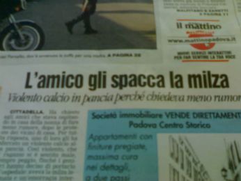 mercoledì 3 giugno 2009 - ore 11:15 monoroscopo cancro: giorgio mastrota - lo vedi su rete4 che fà un programma tutto suo. e non stai dormendo . è tutto vero . a questo punto preso come sei (mutande) corri fuori e vai ad abitare in ecuador. male che vada i materassi li vendi te. LEGGI I COMMENTI (5) - PERMALINK giovedì 21 maggio 2009 - ore 12:59 amanda lepore dico solo questo LEGGI I COMMENTI (2) - PERMALINK martedì 19 maggio 2009 - ore 12:38 odori di u.e. ho la riunione "belle cosce in politica" domani io pierferdi casini gianfry fini maurizione gasparri bondi mostriamo le nostre zampone al parlamento europeo pezzo finito (male) LEGGI I COMMENTI (5) - PERMALINK martedì 12 maggio 2009 - ore 13:12 canto le liturgie. part one ![]() stavo pensando, mangiando una mela, al simbolo della religione cattolica: il crocefisso. è un simbolo macabro direi. immaginate, domani mattina il cristo si sveglia storto e fà: papi, oggi torno sulla terra, ho voglia di vedere come vanno le cose lì, sti quattro ebeti come se la cavano senza di me. dio non dice ne si ne no e fà venire un alluvione nello yucatan perchè ha il cazzo di traverso. quello prende la sua tunichina bianca, si sandalizza e scende sulla terra . così, come le effigi classiche lo raffigurano: barba lunga, capelli lunghi, sandaletto austriaco, tunica bianca con macchie di merluzzo ai pomodorini, coroncina di spine (finte) e stigmate sparse sul corpo. alla discesa tutti lo riconoscono e cominciano ad urlare come impazziti richiendendo autografi, facendosi foto col videofonino, pregando e mangiando manna con le fragole. gesù è felice, si lo è, è tipo hulk hogan che nessuno se lo caga da anni, esce per strada e tutti lo acclamano... ovvero unex fenomeno domenticato dal mondo idolatrato dopo così tanto tempo... FICO NO? beh i più coraggiosi cominciano a tirare fuori il crocefisso per mostrare la loro fede a gesù. IL CROCEFISSO quello cè morto male sul crocefisso. coi chiodi lhanno attaccato. neanche a barbara durso lavrebbero attaccata coi chiodi. e lui si. e glielo mostrano in segno di giubilo e a dirgli: ti ricordiamo così, che penzoli mentre stai morendo. non vedi quanto ti amiamo? checcazzo. come andare dal nipote di kennedy con una collana con attaccato un fucile di precisione urlando: "TUO NONNO SI CHE ERA UN BRAVUOMO, VEDI? CHO UN FUCILINO IN ORO PER RICORDARLO.... ERA UN GRANDE PEM PEM testa che vola ERA UN GRANDISSIMO" voi cattolici siete malati. io tifo per il buddah se quello scende vede la sua immagine paciosa che semidorme e se ne sbatte il cazzo e il cristo penzola ancora nei nostri ricordi poveruomo LEGGI I COMMENTI (15) - PERMALINK martedì 5 maggio 2009 - ore 13:38 piede malconcio siamo con teeeeeee NO STA FUMARE CHE TE FA MAE NO STA BERE CHE TE FA MAE NO STA FUMARE CANEI CHE TE FA MAE. si, e come mi sono fatto male? lavorando eh dio vi fulmini e cosa mi sono perso domenica a rovereto per colpa dellinfortunio su lavoro? I MIEI TORELLI CHE GIUOCANO! dio vi fulmini ma comunque io cero a sostenere dalla panchina, a sostenere le birre che andavo a prendere due a due a sostenere bestemmiando ogni divinità, anche quelle del malawi perchè i torelli son la cosa più bella del mondo perchè sudare con loro, sanguinare, infangarsi, bere, ridere, mangiare, ruttare, farse mae è un onore. ed è stato un onore vedere questi ragazzi battersi come dei torelli (pa forsa) contro degli stronzoni grandi e grossi che lanno prossimo mettono piede nel semi-professionismo. indi per cui. lunga vita al torellame MUUUUUUUUUUUUUUUUUUUUUUUUUUUUUUUUUUUU ![]() ![]() ![]() ![]() ![]() ![]() dio vi maledica o morite arsi, a scelta LEGGI I COMMENTI (9) - PERMALINK lunedì 27 aprile 2009 - ore 13:28 un disegno comune anni fà a fine mese proponevo dei libri molto interessanti da leggere e da avere nella vostra personale biblioteca. cominciamo con la silurata di fresco (bagaglino) Antonella Mosetti. in questo difficile periodo di crisi trovare lavoro è arduissima ! ecco come trovarlo: "un modo sicuro per trovare lavoro" antonella mosetti , mondadori , 12 euro ![]() nota molto interesante, allinterno una sola pagina: ![]() pierferdi casini ci stupisce tutti con un libro dal nome "un disegno comune" la sua dura lotta su strade e uffici per portare alla ribalta le 3 colonne portanti di ogni stato: DIO, PATRIA, FIGA GROSSA "un disegno comune" pierferdinando casini , guanda , 15 euro ![]() a settimana prossima LEGGI I COMMENTI (11) - PERMALINK domenica 19 aprile 2009 - ore 00:23 cercati un buon avvocato, mister milingo stasera ho avuto l’ottima idea di restare a casa a guardare puntate di un telefilm americano appena scaricate illegalmente da internet. ma visto che la giustizia divina che risponde a nome di copyright esiste le puntate che ho scaricato le avevo già viste TUTTE. ma chi sono io per preoccuparmi di questo? non sono certo mago zurlì, e tanto meno laura pausini (anche se mi piacerebbe). loro hanno il vizio di telefonare alla warner bros per lamentarsi che le cose che hanno scaricato buggerando le miracolose e temute leggi del copyright non sono ciò che avevano in effetti cercato pigiando sui tasti. perchè vi dico questo? perchè di si, fatevi i cazzi vostri. insomma. dopo aver gustato questi dottori americani che litigano fra loro e creano simpatici siparietti bevendo molteplici birre comprate dalla FRUTTIVENDOLA sotto casa (loro creavano simpatici siparietti, io bevevo birre comprate dalla FRUTTIVENDOLA sotto casa) decido di farmi un delizioso surrogato di MOKKACINO . oh si GOD SAVE AMEREGA! per la strana legge intestinale che domina i nostri corpi, dopo aver ingurgitato quell’odioso intruglio di nesquik, caffè e latte, il mio corpo ha cominciato ad emettere strani MA piacevoli fischi, propulsioni, disturbi odorosi. arrivato col giornalino dei fumetti al bagno affibbiatomi poso il mio sedere, accendo una sigaretta ed apro la finestra per far fuoriuscure il fastidioso binomio escrementoumano-tabacco tostato . ed è bello guar