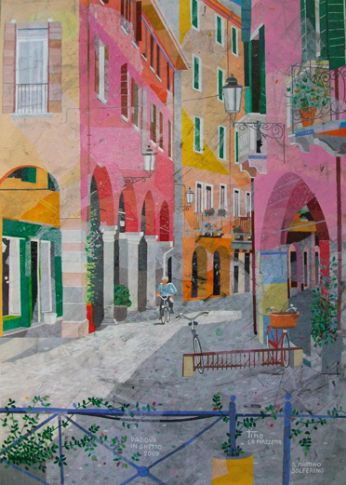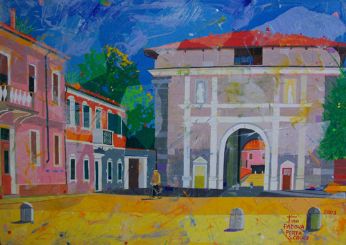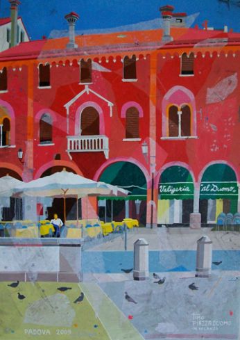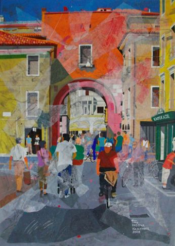 Una Padova Allegra e viva quella che ci propone Valentino Brugnotto nelle sue opere: monumenti storici vecchi di secoli prendono nuova vita sotto le sue abili mani, con un tocco preciso per la prospettiva, con sapienti accostamenti di colori sempre vivaci, mai retorico ma sempre attento a risvegliare l’occhio distratto dell’osservatore. E così dal suo pennello rinascono luoghi famosi oppure recondite vie del centro città, dimenticate ormai dai più, con gli immancabili pedoni, ricchi di particolari, il tutto condito con un sapiente accostamento cromatico. Un’innovativa e positiva visione del quotidiano, come se per Valentino Brugnotto non esistessero mai giorni grigi. Mario Benincà ![]() Per contatti: quadri.tino@hotmail.it