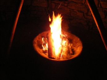 Il fuoco, fonte di luce, di forza, e soprattutto di calore per cucinare le braciole e le salsicce
