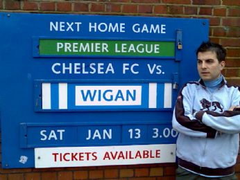 SENSAZIONI: TUTTO MOLTO EMOZIONANTE DALL ATTESA DEL MACTH ,FESTA CON GLI INGLESI A SUON DI BIRRA NEL QUARTIERE DI FUHLAM,L ENTRATA ALLO STADIO CON LA POSSIBILITA’ DI SCOMMETTERE SUL MATCH,TUTTO MOLTO PULITO,SCHERMI AL PLASMA AI BAR PER VEDERE LE PARTITE IN DIRETTA DAGLI ALTRI CAMPI,UNICA NOTA DOLENTE NON SI PUO’ BERE MANGIARE E FUMARE SEDUTI ALLO STADIO MA SOLO NEGLI APPOSITI BAR,CORI FANTASTICI,CANTAVANO TUTTI DONNE E BAMBINI..A FINE MATCH RISCOSSIONE DELLA VINCITA ACQUISTI NEL NEGOZIO DEL CHELSEA CON GADGET DI TUTTI I TIPI I DUE PERSONAGGI QUI SOTTO MI HANNO FATTO VINCERE 25 STERLINE PRIMA DI ENTRARE ALLO STADIO AVEVO SCOMMESSO LAMPARD primo marcatore del match ROBBEN primo marcatore secondo tempo....AVEVO MESSO ANCHE IL 3-0 risultato esatto ma IL COGLIONE DIDROGBA AL 92 HA SEGNATO IL 4-0...il mio amico ha beccato il 4-0...PRATICAMENTE ERO IO CONTRO LUI