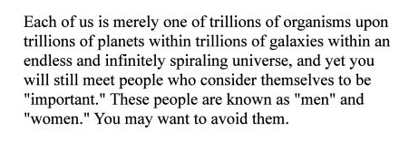 "Listen up, maggots. You are not special. You are not a beautiful or unique snowflake. We are the same decaying organic matter as everyone else."