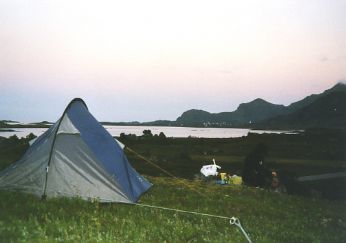 la tenda alien piantata nelle fantastiche paludi delle lofoten - nb. erano le 11.30 di sera