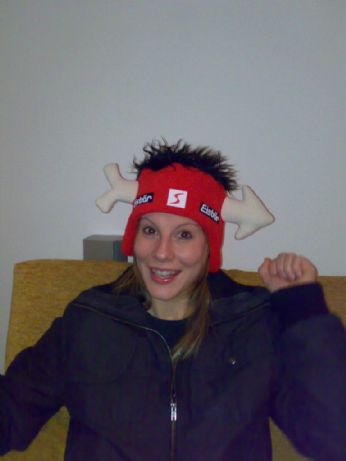 e questa è una folgorata che questanno dovremmo insegnarli ad andare in snowboard. si è già impossessata del cappello! comunque alla fine lo usero io, hihihihihi chi si vuole aggiungere al gruppo faccia un fischio, ma chi non è capace a fischiare è fregato.
