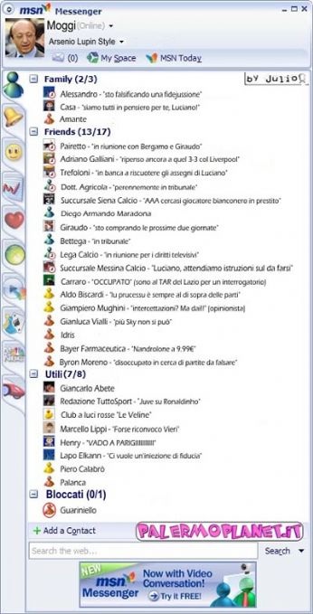 Che dire della Juve e delle verità nascoste che stanno venendo alla luce in questi giorni...certo, ci sono state tante cose irregolari e sicuramente altre ne verrano a scoperte, ma io non credo a tutto quello che mostrano e dicono i telegiornali. Secondo me si sta esagerando su certe cose, per esempio oggi ho sentito che una partita è stata falsata perchè l’arbitro ha ammonito appositamente 2 giocatori della squadra avversaria, che erano diffidati, per favorire la Juventus. Ma i relativi falli non ce li hanno mica mostrati, una persona deve farsi una propria idea, deve vedere con i propri occhi!Non si può diffamare così, sparando certezze che poi devono ancora essere verificate!! E infatti tante sono solo accuse, non sono ancora state dimostrate, ci sono degli interrogatori da fare!! Secondo me i media ci stanno speculando sopra, la gente è suscettibile e si sta rovinando la reputazione di una grande squadra che pare abbia sempre rubato! E allora quel scudetto che la Juve ha perso contro la Reggina all’ultima giornata?!? forse che l’arbitro è stato pagato troppo poco?? mah..prima di esprimere giudizi affrettati aspetterei...