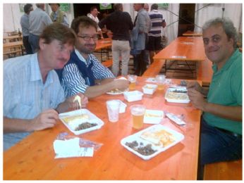 Va bene cenare a mezzanotte con formaggio alla piastra, polenta, funghi pieni di aglio e patatine fritte - non era rimasto altro alla festa.