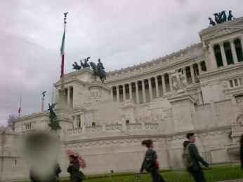 Questa invece è l’unica foto che abbiamo fatto di Roma (io l’ho fatta, in realtà). Dal taxi, mentre l’autista ci invitava a fare la rivoluzione, "voi che siete giovani e che ancora fate i concorsi". Guardi che non era un concorso. "Ah, e quindi che concorso era?". Ottimo.