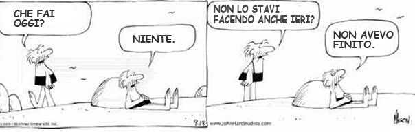 martedì 28 ottobre 2008 - ore 09:50 Ormai conto i giorni. COMMENTA (0 commenti presenti) - PERMALINK domenica 26 ottobre 2008 - ore 20:31 Ve lo diamo noi l’Hocus Pocus! Le streghe son tornate!! ![]() ... ![]() ![]() ![]() ![]() ![]() ... LEGGI I COMMENTI (4) - PERMALINK domenica 26 ottobre 2008 - ore 19:37 A te che giri con l’infradito in cerca di polvere. ai regali di Natale... (delle "mie amiche infami" per giunta...) ...ma Poeastrea questo fa conto che sia xa incartà!! ![]() ... ... COMMENTA (0 commenti presenti) - PERMALINK domenica 26 ottobre 2008 - ore 15:51 ....O ![]() ...o pagano le amiche... ![]() COMMENTA (0 commenti presenti) - PERMALINK sabato 25 ottobre 2008 - ore 15:58 In barba a Charlie. ![]() Ahnn...io sono la Barrymore... ![]() ...ergo spartive ea bionda e ea cinese! LEGGI I COMMENTI (3) - PERMALINK venerdì 24 ottobre 2008 - ore 22:22 Come concludo la settimana. LEGGI I COMMENTI (4) - PERMALINK venerdì 24 ottobre 2008 - ore 09:53 Specchio riflesso. LEGGI I COMMENTI (5) - PERMALINK giovedì 23 ottobre 2008 - ore 14:44 Attendo la chiamata. ![]() ...della serie: "datti ’na mossa a fare il numero!!" ... ... COMMENTA (0 commenti presenti) - PERMALINK giovedì 23 ottobre 2008 - ore 11:33 Credo alle fate e a Babbo Natale. poi c’ho riflettuto e te lo metto per iscritto: "io sono una da dichiarazione, c’è poco da fare amica". Avrò guardato troppi film romantici a lieto fine, o letto troppi Harmony...ma una cosa quando ci vuole, ci vuole. Non m’importa del Damiani nelle patatine nè a gesta eroiche d’altri tempi, ma sono una all’antica e trovo che la dichiarazione, anche se non di matrimonio, sia un modo per sugellare un rapporto ed elevarlo ad un "gradino più su". Trovo che questo sia nell’ordine delle cose, certo non nelle storielle di passaggio, ma quando trovi la persona giusta, se mai la si trova, si decide di impostare la vita in un certo modo. Ecco la dichiarazione ci starebbe bene nel mezzo, non è il fattore tempo che lo determina: dopo tot mesi, tot anni, l’importante è che valga per entrambi... Lo so che la persona che starà con me, sarà condannata a mangiare noccioline tutti i giorni, ma quel giorno lo dovrà fare in ginocchio... ...a costo di spezzarglielo...capito il concetto ![]() ?? LEGGI I COMMENTI (1) - PERMALINK mercoledì 22 ottobre 2008 - ore 10:37 Le parole sfumano. ...ma certe volte puo’ essere anche un complimento... ![]() ...e non credo ci sia esempio più lampante... ![]() COMMENTA (0 commenti presenti) - PERMALINK > > > MESSAGGI PRECEDENTI |