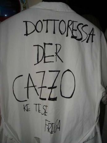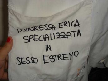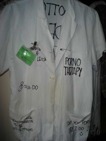 Ancora tosse. E fuori è oramai autunno. Ho acceso i termi e sono andata in letargo. Sto dormendo tantissimo, saranno i medicinali o saranno gli anni di sonno arretrato, ma sarà un trauma svegliarmi prima delle undici lunedì. Ieri pomeriggio ho trasformato un banale camice da infermiere in un porno vestito da dottoressa per la morosa del mio migliore amico che si è laureata in medicina. Pronte calze a rete e reggicalze, fari fori voluti nella stoffa...sono diventata la maga sarta dei vestiti di laurea