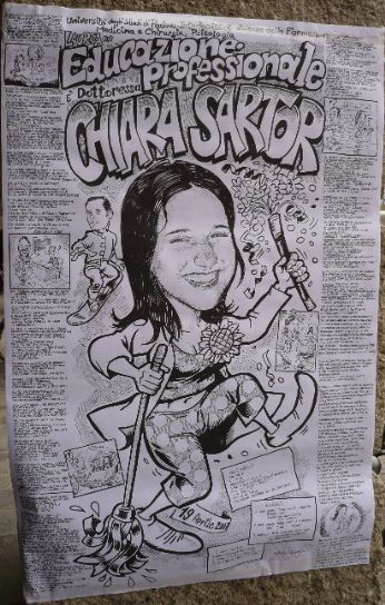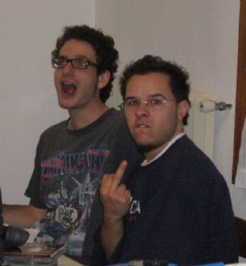 venerdì 18 maggio 2007 - ore 01:35 Meglio questa! COMMENTA (0 commenti presenti) - PERMALINK martedì 15 maggio 2007 - ore 00:45 BLOC PARTY Visto che nell’ultimo periodo, tra il tempo che non basta mai ed il collegamento ad internet che ogni tanto va a farsi fottere, non sono riuscito a scrivere molto, quindi vedrò di riassumere un pò il tutto: Prima di tutto ho il piacere di informarvi che siamo riusciti a dare un sesso al cuccioletto di Ciprita, quindi per piacere di qualcuno (e mio grande rammarico) diamo il benvenuto ad un’altra donna in casa! Ma almeno mi sono tolto la soddisfazione di darle il nome, così ecco a voi: Cara... Poi c’è anche da ricordare che qualche giorno fa, esattamente l’8 maggio, quella "troia" del mio miglior amico (vedi blog Azzone) ha compiuto gli anni, quindi ancora: (Che belli che siamo in versione indemoniati!) Infine "il ragazzo di campagna" questo fine settimana è ritornato in città...la solita...quella grande dove si trovano tanti fratellini, sorelline, zii e zie... ...e in men che non si dica si è ritrovato con la "strana coppia"... ...o meglio l’unica coppia al mondo che non riesce a rimanere insieme più di 5 minuti senza litigare! Per poi fare pace entro i 10 minuti successivi...e ad acque calme litigare di nuovo!! Ma daltronde come si fa a non volergli bene?! Così sabato sera siamo andati tutti insieme al bellissimo locale chiamato: "Alcatraz"...e ci siamo divertiti...eccome se ci siamo divertiti...ecco qualche foto per che possono dimostrare quanto ci siamo divertiti: ...e questo è niente a confronto di quanto ci siamo divertiti all’uscita!! Ma mi fermo quì perchè non vorrei annoiarvi troppo, così passiamo al pezzo forte...al concerto...Il Concerto...due parole e solo qualche immagine...perchè non saprei spiegare in nessun altro modo quello che abbiamo vissuto: Splendido...ve lo posso lasciar solo immaginare... LEGGI I COMMENTI (23) - PERMALINK martedì 1 maggio 2007 - ore 02:09 La Ciprita ha fatto il Ciprito! Arrivo a casa oggi a mezzogiorno e sento mia madre: "Siamo aumentati in famiglia!" arrivo in cantina e vedo Ciprita, la mia gatta (che in confidenza chiamo anche "Tassa", per alcuni scorsi e spiacevoli problemi di salute!), che ha partorito un cuccioletto!! Cara... Adesso sto aspettando impaziente di scoprire se il nuovo arrivato è un maschietto o una femminuccia così gli posso dare un nome (anche se lho già battezzato Pepe, visto che in questo periodo non ne voglio sapere più di ragazze...e nemmeno di gatte!), e prossimamente vedremo anche Frida diventare mamma! Ma con la pancia che ha mi sa che lei ne sfornerà almeno una dozzina!! Staremo a vedere... LEGGI I COMMENTI (13) - PERMALINK giovedì 19 aprile 2007 - ore 23:59 Il primo amore non si scorda mai! E anche la cuginetta si è laureata... ...magari un giorno ce la farò anchio... ...facciamo anche no! Anche se ste feste di laurea mi piacciono parecchio! LEGGI I COMMENTI (9) - PERMALINK mercoledì 18 aprile 2007 - ore 01:33 NOSTRO MALGRADO NOSTRO MALGRADO aprono il loro "Portatemi un Bambino" tour 2007 con una spettacolare data piena di ricche sorprese il 20/04/07 al BAR CASTELLO di San Polo di Piave (TV) il tutto avrà inizio alle ore 21.30 VEDETE DI NON MANCARE! LEGGI I COMMENTI (4) - PERMALINK martedì 3 aprile 2007 - ore 00:28 T-SHIRT LEGGI I COMMENTI (7) - PERMALINK domenica 1 aprile 2007 - ore 06:44 Ah...scherzo! LEGGI I COMMENTI (3) - PERMALINK sabato 31 marzo 2007 - ore 02:00 Tarzanelliiiiiiiiii! LEGGI I COMMENTI (2) - PERMALINK giovedì 29 marzo 2007 - ore 23:10 l’amico delle donne COMMENTA (0 commenti presenti) - PERMALINK giovedì 29 marzo 2007 - ore 02:09 gonfio COMMENTA (0 commenti presenti) - PERMALINK > > > MESSAGGI PRECEDENTI |