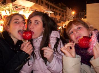 e poi la prima sera...distutte dal viaggio e dal camminare siamo anche uscite con gli amici romani della Sere! e qui non poteva mancare la mela caramellata!
