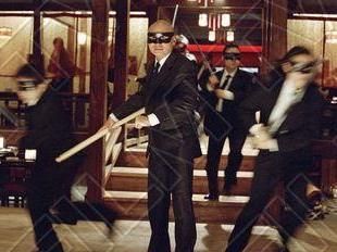 He clubs Mr. Alexander with stick, in the time to the music.