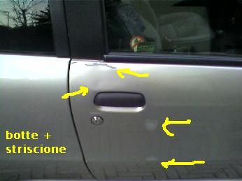 Dunque che aveva a parte strisci botte (brutti bastardi malefici), il cosino dellaccensione non cera è stato totalmente rimosso..gomme(o ruote ) sgonfie e distrutte...le mascherine delle ruote che avevo fatto mettere nuove neanche 1 mese fa..strisciate, schifosamente mal trattate!!
