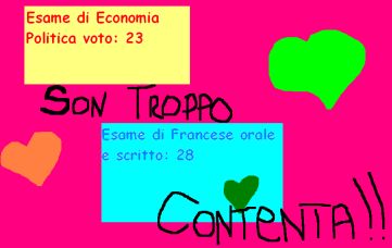 Ecco....sn tornata da poco dallesame di economia!!Bhè che dire??è andato e questo è tutto..domani in tarda serata ci sono i voti in internet..speriamo bene.