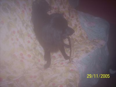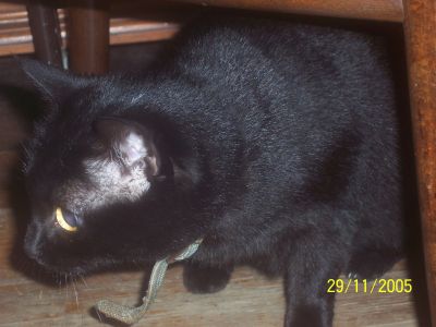 ’Rina è nata all’incirca il 20 aprile 2004, ed una notte tra una domenica e un lunedì di fine maggio è capitata dalle parti del locale dove x 4 anni ho lavorato come barista/cameriera. A fine serata, soprattutto dall’entrata in vigore della legge antifumo, ci fermavamo in pieno relax "a fumare l’ultima!"...ma torniamo a noi! Era piccolissima, affamatissima e nerissima! Tra tutti i colleghi che cercavano di avvicinarla per darle un po’ di latte è saltata sulle mie gambe (e no ve diso co che onge...!). Ancora non sapevo fosse femmina (così decisi che si sarebbe chiamata "Ringhio"... indovinate in onore di chi!!!) ma avevo già capito che non avrei avuto il coraggio di lasciarla lì in balìa di una strada statale trafficatissima!(dove sorge il locale di cui sopra!). Fu così che la portai in macchina (che nero sul scuro xe tutto dire!) e quella notte (o meglio, quel che della notte restava perchè saranno state le 04:00 del mattino!) dormì con me! Il giorno successivo l’abbiamo passato tra veterinaria, negozi di animali e preparazione del suo habitat! La mia cucciola dorme con me, sul mio letto... nonostante la comodissima e coloratissima poltroncina che le comprai...!e che è lì per i peluches!!! e qui ve la faccio vedere in "modalità attacco"!!!