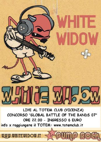 giovedì 25 ottobre 2007 - ore 18:23 DOMANI SERA!!!! DOMANI SERA PARTECIPEREMO A "GLOBAL BATTLE OF THE BANDS 07" AL TOTEM CLUB DI VICENZA. PER CHI VOLESSE VENIRE A SENTIRE UN PO DI GRUPPI E MAGARI A SUPPORTARCI VISTO CHE LE VOTAZIONI SONO SUDDIVISE TRA GIURIA E PUBBLICO, E OVVIAMENTE BEN ACCETTO!!!! ![]() COMMENTA (0 commenti presenti) - PERMALINK mercoledì 24 ottobre 2007 - ore 09:15 VENERDI SERA WHITE WIDOW LIVE AL TOTEM CLUB DI VICENZA IN OCCASIONE DEL CONCORSO "GLOBAL BATTLE OF THE BANDS" INIZIO SERATA ORE 22.00 E INGRESSO COMPLETAMENTE GRATUITO!!!! PER INFO SU COME RAGGIUNGERE IL TOTEM TOTEM CLUB COMMENTA (0 commenti presenti) - PERMALINK lunedì 22 ottobre 2007 - ore 13:30 OMBRALONGA IERI GIORNATA A TREVISO PER LOMBRALONGA.......BEH CHE DIRE.......UNA GIORNATA ALLINSEGNA DEL VINO E DELLA FESTA.....ESPERIENZA SICURAMENTE DA RIPETERE!!!! COMMENTA (0 commenti presenti) - PERMALINK venerdì 19 ottobre 2007 - ore 07:35 finalmente oh che bello......anche se questa giornata e iniziata prima del solito non importa, e venerdi e questo e limportante....... e domenica tutti allOMBRALONGA a Treviso......qualcuno di voi viene? buona giornata a tutti!!!! LEGGI I COMMENTI (4) - PERMALINK giovedì 11 ottobre 2007 - ore 10:30 STASERA!! PARTE STASERA AL GREENWICH LA RASSEGNA "SOSTENIAMO LA MUSICA INDIPENDENTE 3".......CHE DIRE......VISTO CHE I GRUPPI SONO INTERESSANTI E VALIDI BISOGNA COGLIERE IN PIENO QUESTA OCCASIONE PER PROMUOVERE E SOSTENERE......PERCHE MUSICA CE NE MOLTA E SOPRATTUTTOMOLTO VALIDA.....IO NON SO SE RIUSCIRO A PASSARE MA SPERO DI RIUSCIRCI....... ![]() LEGGI I COMMENTI (2) - PERMALINK venerdì 5 ottobre 2007 - ore 08:10 STASERA!! ![]() VI ASPETTIAMO!!! COMMENTA (0 commenti presenti) - PERMALINK lunedì 17 settembre 2007 - ore 21:58 A PALLA!!! BEH DEVO DIRE CHE IN QUESTO PERIODO LE COSE PER IL GRUPPO VANNO MOLTO BENE......STIAMO RACCIMOLANDO UN PO DI DATE E OLTRE AI LIVE ANCHE NUOVE ESPERIENZE COME QUELLA CHE CI VEDRA PROTAGONISTI GIOVEDI 27 PRESSO GLI STUDI DI RADIO COOPERATIVA.....E POI CHE DIRE SIAMO STATI CHIAMATI PER IL TERZO ATTO DI "SOSTENIAMO LA MUSICA INDIPENDENTE", SUONEREMO AL REWIND LUNO DICEMBRE CON AYANAMY E VENEREA, INSOMMA PER UN GRUPPO CHE SI AFFACCIA PIANO PIANO NELLA SCENA PADOVANA DIREI CHE NON E PER NIENTE MALE!!! LEGGI I COMMENTI (5) - PERMALINK martedì 11 settembre 2007 - ore 22:24 week end BEH CHE DIRE......WEEKEND DA PAURA, SENZA UNATTIMO DI RESPIRO, TERMINATO IERI SERA CON UNA SERATA DEGNA DI NOTA. DOMENICA SERA CONCERTO ALLO STRAROCK....COME DICEVO NEL POST PRECEDENTE BEL PALCO, SERVICE DA PAURA E BELLA ATMOSFERA IN GENERALE, TUTTO QUESTO HA RESO LA PERFORMANCE MOLTO POTENTE E SPERO ANCHE COINVOLGENTE....DOPO DI NOI HA SUONATO UN GRUPPO TRIBUTO AI DEEP PURPLE.....OK E COVER ZE COVER.....MA RAGASSI QUESTI SUONAVAMO DA PAURA!!!! IERI SERA INVECE TAPPA AL FUN FAIR FESTIVAL A PIAZZOLA.....RINGRAZIO ANCORA MOLTO SENTITAMENTE CARLO E NOCC CHE CI HANNO SEGUITO E CHE CI HANNO DATO LA POSSIBILITA DI PARTECIPARE......ANCHE QUI BELLAMBIENTE E BELLA ATMOSFERA....E ANCHE QUI A MIO PARERE ABBIAMO FATTO UN BUON CONCERTO.....CREDO ANCHE GRADITO........ADESSO LA PROSSIMA DATA CI ASPETTA IL 5 OTTOBRE AL REWIND DI VILLAFRANCA.....BUON PROSEGUIMENTO DI SETTIMANA!!! LEGGI I COMMENTI (6) - PERMALINK lunedì 10 settembre 2007 - ore 12:26 STASERA!! BUONA SETTIMANA A TUTTI!!!!! IERI SERA CONCERTO ALLO STRAROCK....BELLISSIMA ATMOSFERA, BEL PALCO, BELLIMPIANTO.....BELLA LA LOCATION......E BELLA PERFORMANCE.....BREVE MA MOLTO INTENSA....A PRESTO ULTERIORI COMMENTI. INTANTO STASERA SI REPLICA AL FUN FAIR FESTIVAL A PIAZZOLA SUL BRENTA.....VI ASPETTIAMO IN TANTISSIMI!!!!! COMMENTA (0 commenti presenti) - PERMALINK domenica 9 settembre 2007 - ore 16:48 STASERA!!!! WHITE WIDOW LIVE AT STRAROCK PRESSO PARCO DI VILLA LOREDAN A STRA VI ASPETTIAMO NUMEROSI!!! COMMENTA (0 commenti presenti) - PERMALINK > > > MESSAGGI PRECEDENTI |