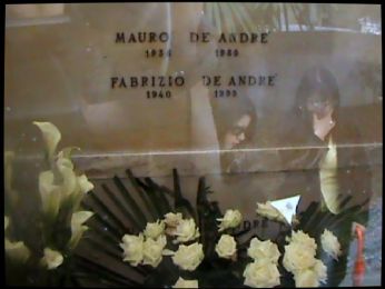 Orca bestia, finia la vancansa.... Ma sò contento: gò sogiornà par tre dì nela "città vecchia" di Genova a do passi da Via del Campo e gò respirà la stessa aria gonfia de salsedine e spusse varie (pisso, scoasse ecc.) che ga ispirà Fabrizio De Andrè. el me cantautore preferìo da senpre insieme co Gaber... Sò anca andà a saludarlo al simitero de Staglieno (consilio na visita a tuti i apassionai de arte, parché qua se vede le opere più significative delarte scultorea da metà 800 in vanti)... Meto na foto che gò scatà indove se vede anca me mojere e me fioea no par el gusto de mostrare lultima dimora de Fabrizio ma par na forma de omagio personale a un grande dela nostra canson (e poesia) e far vèdare la gran umiltà e sobrietà de chi gaveva cpio da senpre che la Morte uguaglia tuti... Gò provà forti emossion anca davanti ala tonba dela mojere de Oscar Wilde che qua riposa in un sono eterno dove no ghe ze più onmbra de soferensa e ciàcole..... Domando scusa de sta parentesi seria ma prometo che da doman tornarò el mona de senpre... ansi forse un poco de più!!!